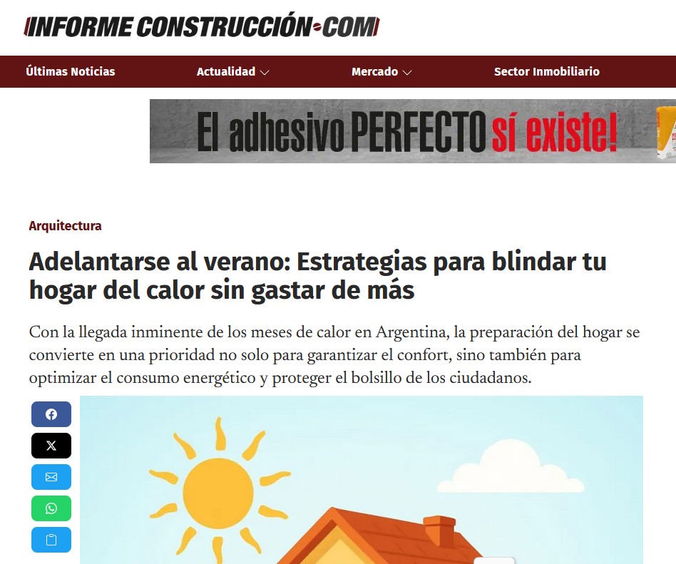 “Argentina enfrenta cada año un desafío significativo en su matriz energética durante los meses más cálidos, particularmente entre diciembre y febrero. El uso intensivo de sistemas de refrigeración, principalmente el aire acondicionado, dispara la demanda eléctrica a niveles sin precedentes. El aire acondicionado, si bien es indispensable para mitigar las altas temperaturas, puede representar hasta un 25% del consumo eléctrico total de un hogar en momentos de máxima exigencia”, comenta Javier Maltz, presidente de la Asociación Nacional de Materiales de Aislación Térmica.